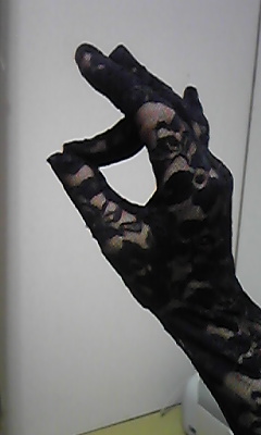 写真は衣装の手袋をして。