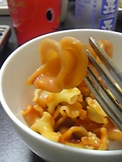 インスタントのミートソースをかけて、出来上がり。